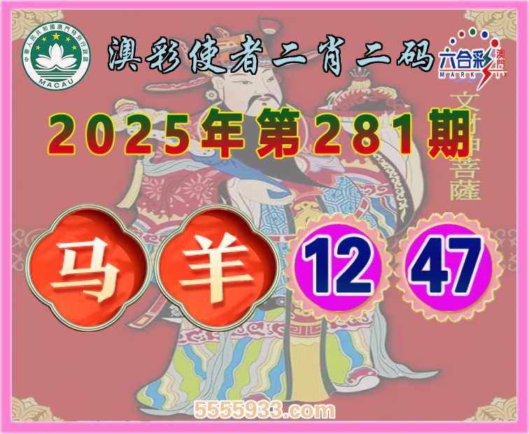 281期:【澳彩使者】 二肖二码【马羊】【12.47】开:羊47准