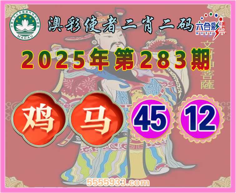 283期:【澳彩使者】 二肖二码【鸡马】【45.12】开:鸡45准