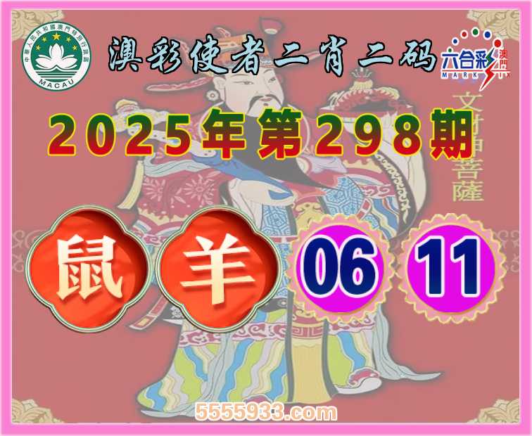 298期:【澳彩使者】 二肖二码【鼠羊】【06.11】开:00准