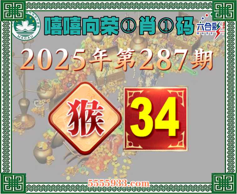 287期:〖嘻嘻向荣〗 ①肖①码【猴】【34】开:猴34准