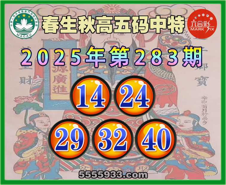 283期:【春生秋高】 五码中特【14.24.29.32.40】开:45错