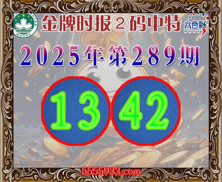 289期:【金牌时报】 ②码中特【13.42】开:42准