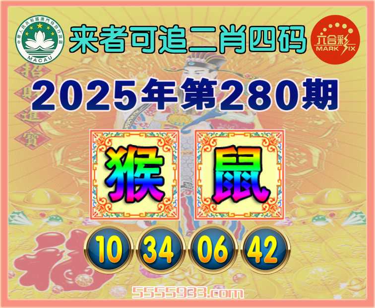 280期:【来者可追】 二肖四码【猴鼠】【10.34.06.42】开:鼠42准