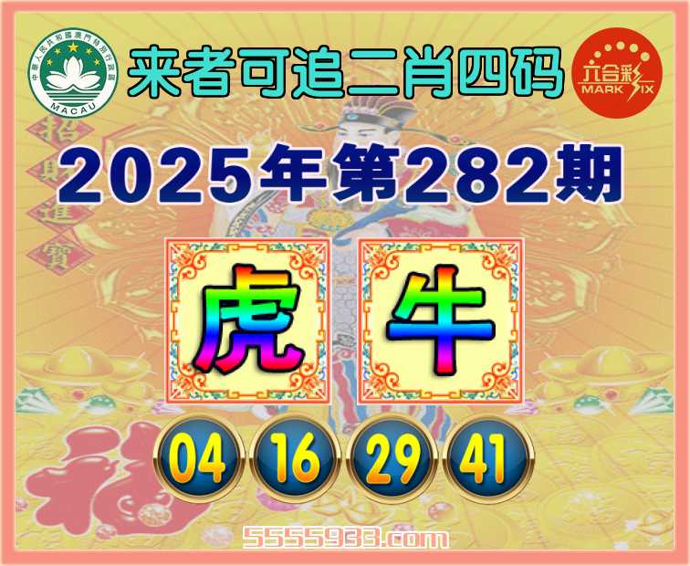 282期:【来者可追】 二肖四码【虎牛】【04.16.29.41】开:牛41准