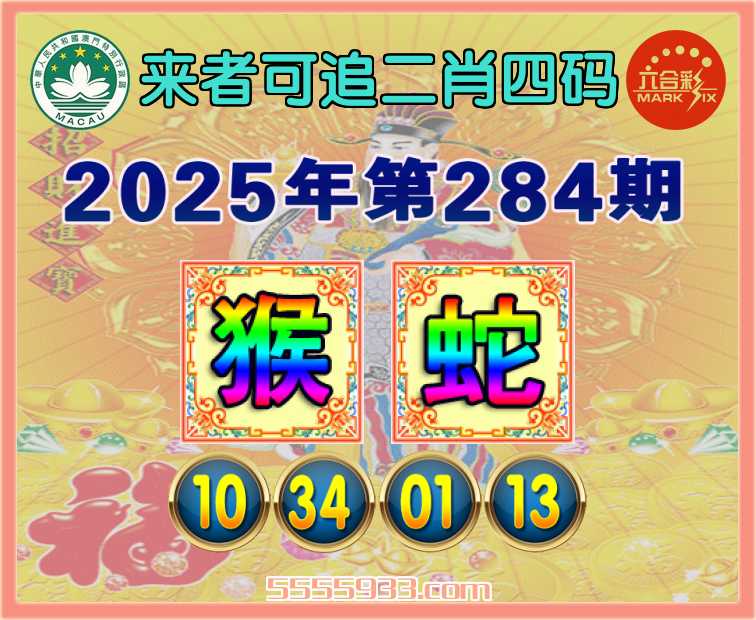 284期:【来者可追】 二肖四码【猴蛇】【10.34.01.13】开:牛41错