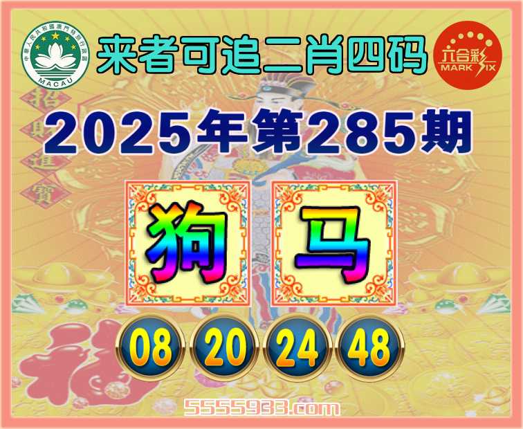 285期:【来者可追】 二肖四码【狗马】【08.20.24.48】开:马24准