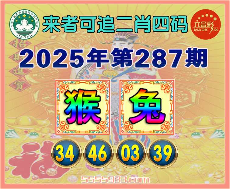 287期:【来者可追】 二肖四码【猴兔】【34.46.03.39】开:猴34准